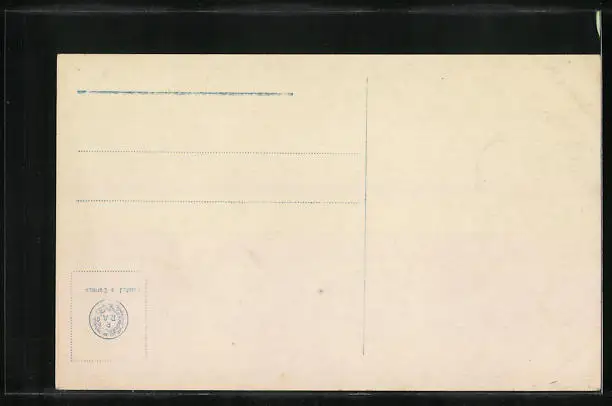 Personenbezogene Daten auf der Rückseite der Karte wurden durch blauen Textmarker unkenntlich gemacht. Die blauen Stellen sind auf die Vorderseite durchgeweicht und wirken sich negativ auf das Postkartenfoto aus