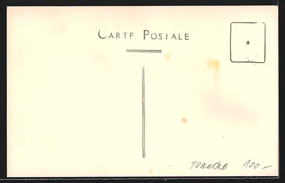 Personenbezogene Daten auf der Rückseite der Karte wurden durch blauen Textmarker unkenntlich gemacht. Die blauen Stellen sind auf die Vorderseite durchgeweicht und wirken sich negativ auf das Postkartenfoto aus