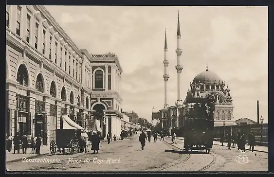 AK Constantinople, Place de Top-Hané, Strassenbahn
