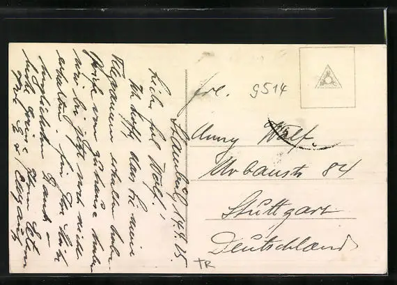 alte Ansichtskarte, gelaufen, Briefmarke entfernt, Stempelspur, guter Zustand