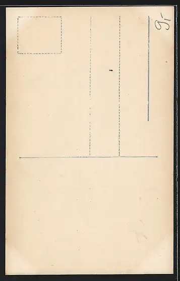 Personenbezogene Daten auf der Rückseite der Karte wurden durch blauen Textmarker unkenntlich gemacht. Die blauen Stellen sind auf die Vorderseite durchgeweicht und wirken sich negativ auf das Postkartenfoto aus