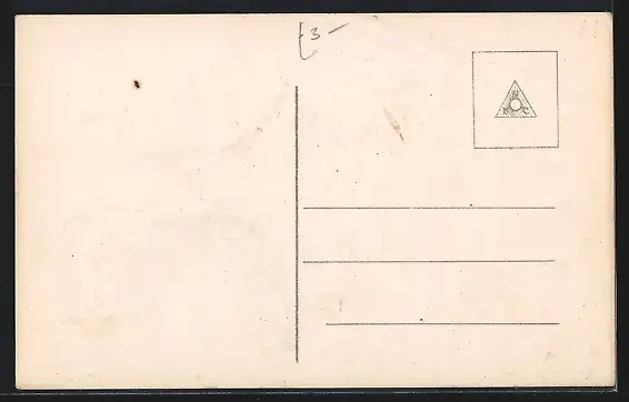 Personenbezogene Daten auf der Rückseite der Karte wurden durch blauen Textmarker unkenntlich gemacht. Die blauen Stellen sind auf die Vorderseite durchgeweicht und wirken sich negativ auf das Postkartenfoto aus