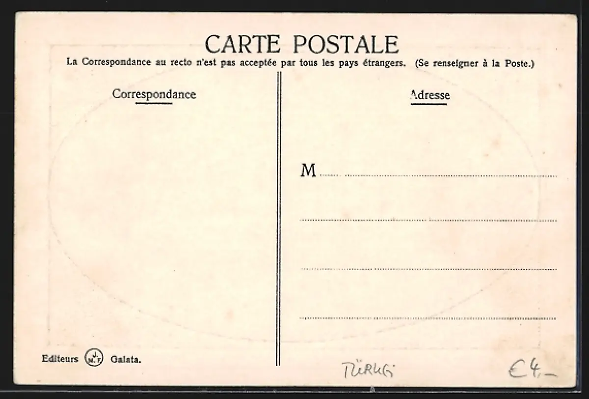 Personenbezogene Daten auf der Rückseite der Karte wurden durch blauen Textmarker unkenntlich gemacht. Die blauen Stellen sind auf die Vorderseite durchgeweicht und wirken sich negativ auf das Postkartenfoto aus