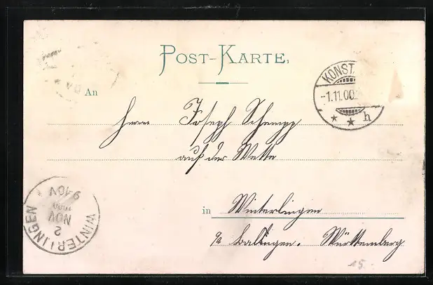alte Ansichtskarte, gelaufen 1900, Briefmarke entfernt, guter Zustand