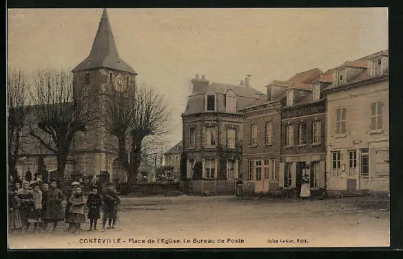 AK Conteville, Place de l`Eglise, Le Bureau de Poste