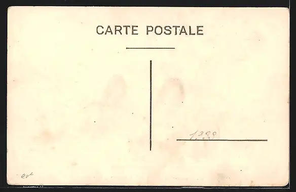 Personenbezogene Daten auf der Rückseite der Karte wurden durch blauen Textmarker unkenntlich gemacht. Die blauen Stellen sind auf die Vorderseite durchgeweicht und wirken sich negativ auf das Postkartenfoto aus