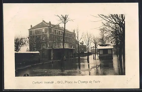 AK Corbeil, Inondations de 1910, Place du Champ de foire