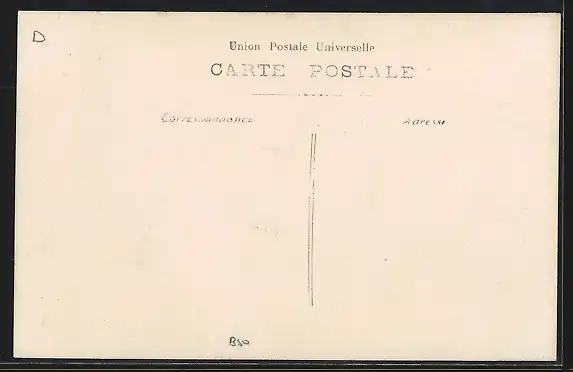 Personenbezogene Daten auf der Rückseite der Karte wurden durch blauen Textmarker unkenntlich gemacht. Die blauen Stellen sind auf die Vorderseite durchgeweicht und wirken sich negativ auf das Postkartenfoto aus
