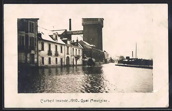 AK Corbeil, Inondations de 1910, Quai Mauzaise