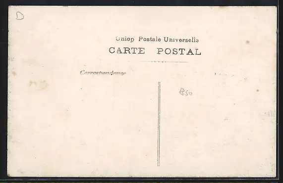 Personenbezogene Daten auf der Rückseite der Karte wurden durch blauen Textmarker unkenntlich gemacht. Die blauen Stellen sind auf die Vorderseite durchgeweicht und wirken sich negativ auf das Postkartenfoto aus