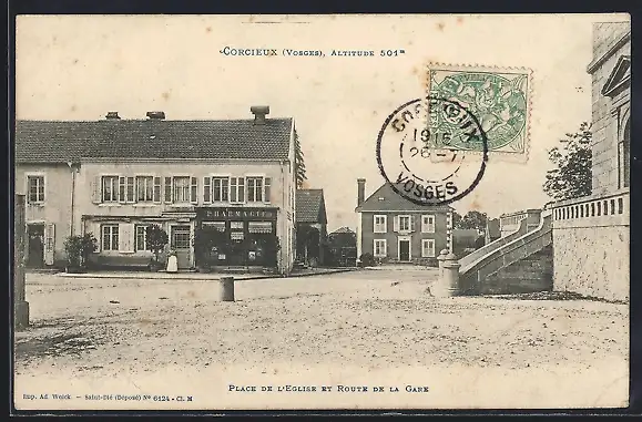 AK Corcieux, Place de l`Église et Route de la Gare