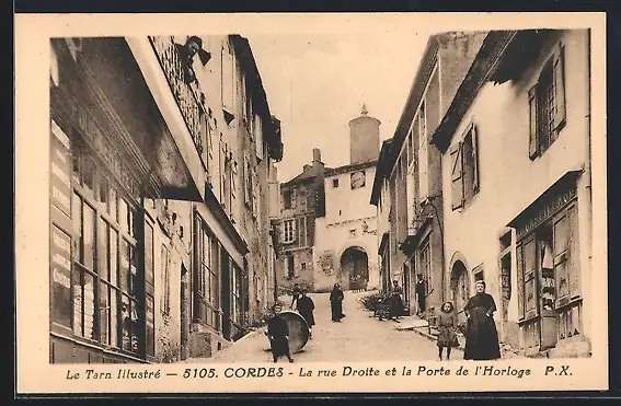 AK Cordes /Tarn, La rue Droite et la Porte de l`Horloge