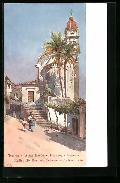 AK Corfou, Eglise Sainte Barbare Potamò