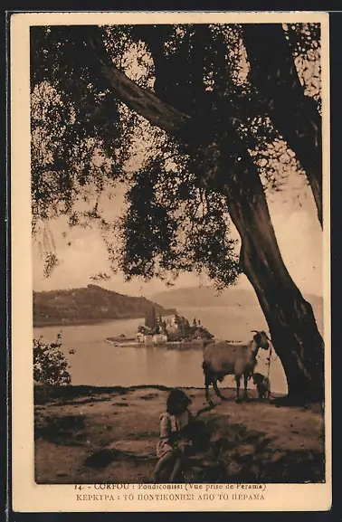 AK Corfou, Pondiconissi (Vue prise de Perama)