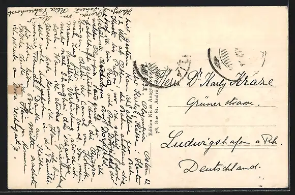 alte Ansichtskarte, gelaufen, Briefmarke entfernt, Eckknick re. oben, guter Zustand