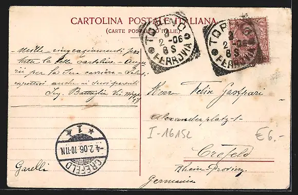 gelaufen 1906, Eckknick links oben, guter Zustand