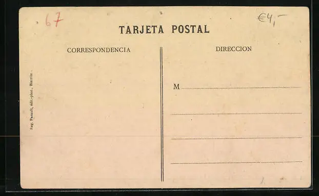 Personenbezogene Daten auf der Rückseite der Karte wurden durch blauen Textmarker unkenntlich gemacht. Die blauen Stellen sind auf die Vorderseite durchgeweicht und wirken sich negativ auf das Postkartenfoto aus