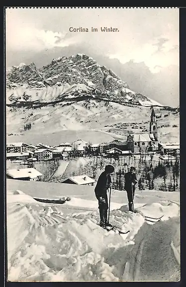 AK Cortina, Ortspartie im Winter, mit Skiläufern