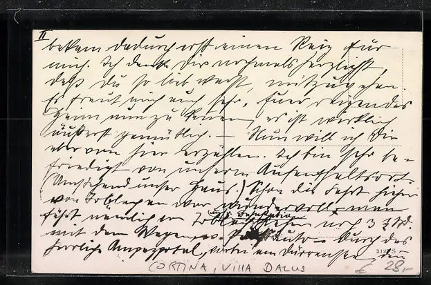 Personenbezogene Daten auf der Rückseite der Karte wurden durch blauen Textmarker unkenntlich gemacht. Die blauen Stellen sind auf die Vorderseite durchgeweicht und wirken sich negativ auf das Postkartenfoto aus