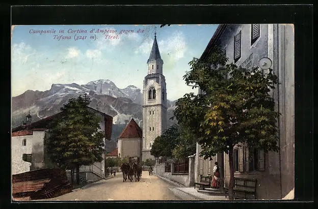 AK Cortina d`Ampezzo, Ortspartie gegen die Tofana