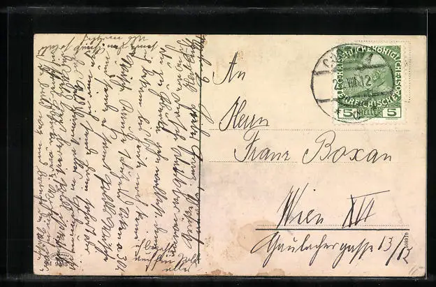 alte Ansichtskarte, gelaufen 1912, Bugspur re. unten, guter Zustand