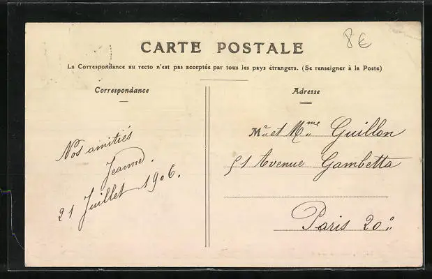gelaufen 1906, Eckknick unten re. u. oben li., guter Zustand