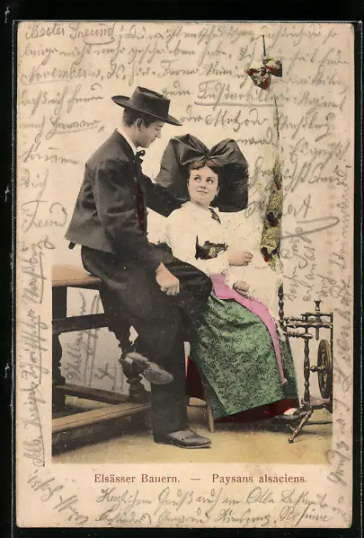 AK Costumes Alsaciens, Paar in elsässer Trachten
