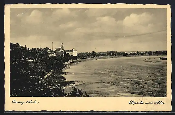 AK Coswig /Anh., Elbpartie mit Schloss