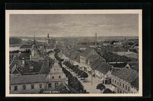 AK Coswig (Anhalt), Ortsansicht aus der Vogelschau