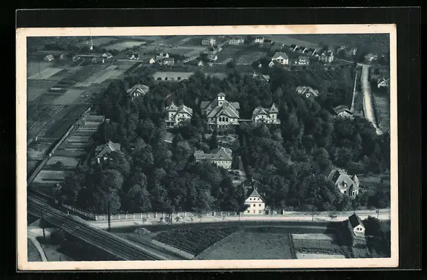 AK Coswig, Heilstätte Lindenhof aus der Vogelschau