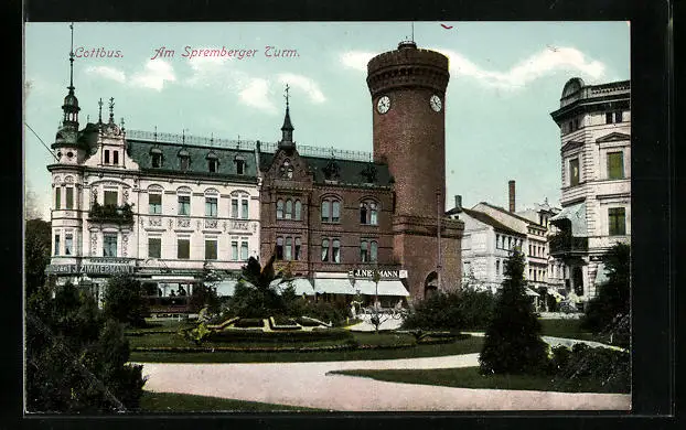 AK Cottbus, Am Spremberger Turm mit Geschäften