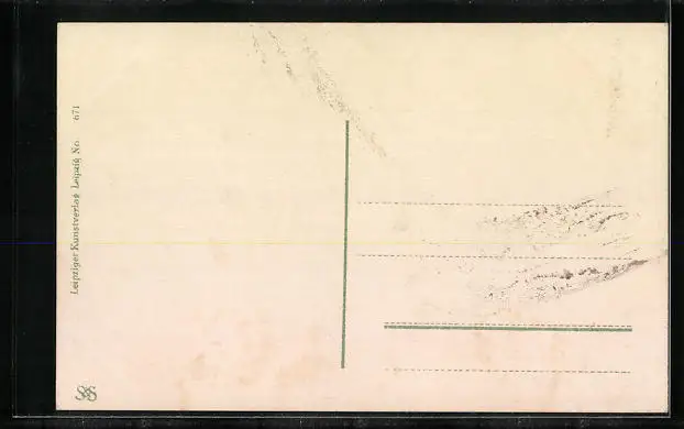 Personenbezogene Daten auf der Rückseite der Karte wurden durch blauen Textmarker unkenntlich gemacht. Die blauen Stellen sind auf die Vorderseite durchgeweicht und wirken sich negativ auf das Postkartenfoto aus