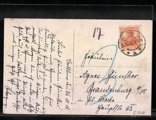 alte Ansichtskarte, gelaufen 1918, Eckknicke oben, guter Zustand