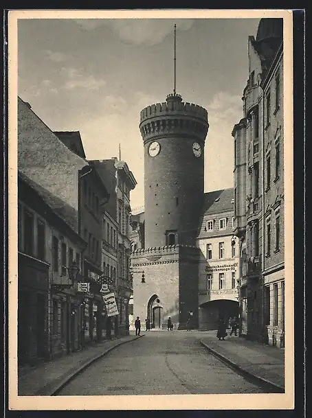AK Cottbus, Blick auf den Spremberger Turm aus der Burgstrasse