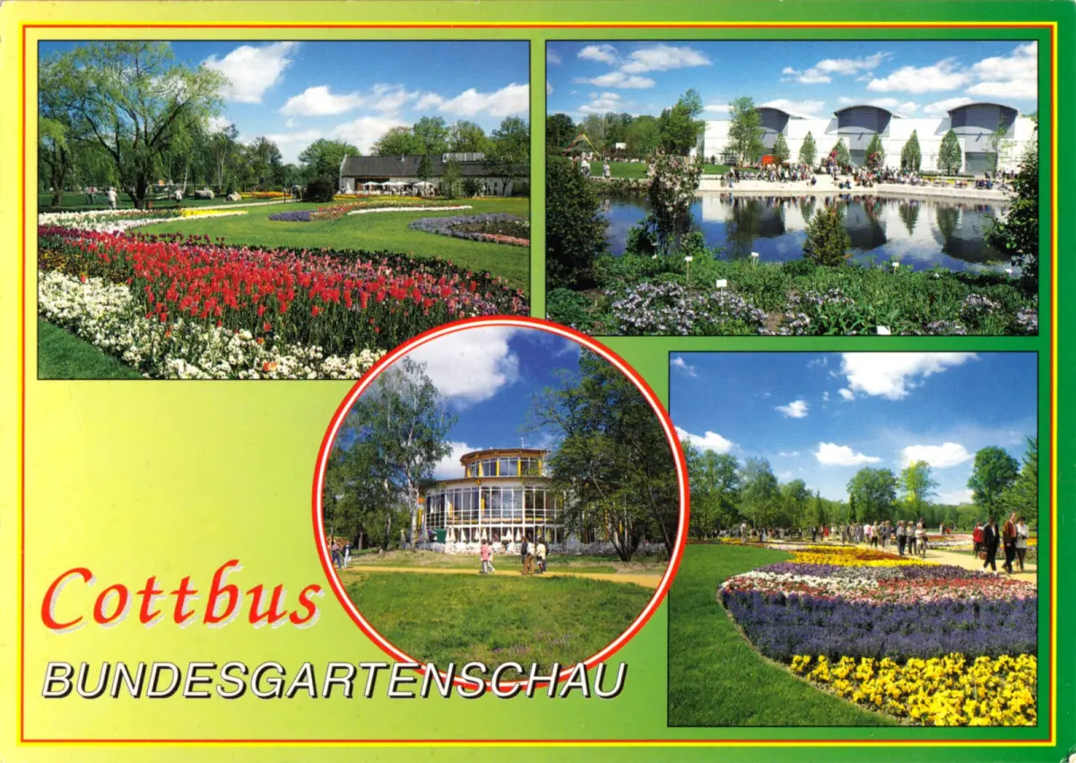 AnsichtskarteCottbusBundesgartenschau, vier Abb., gestaltet