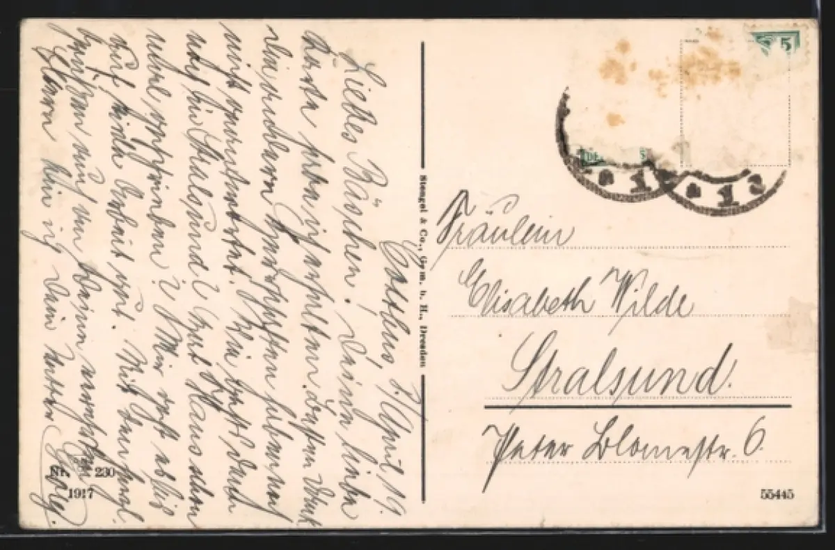 alte Ansichtskarte, gelaufen, Briefmarke entfernt, guter Zustand