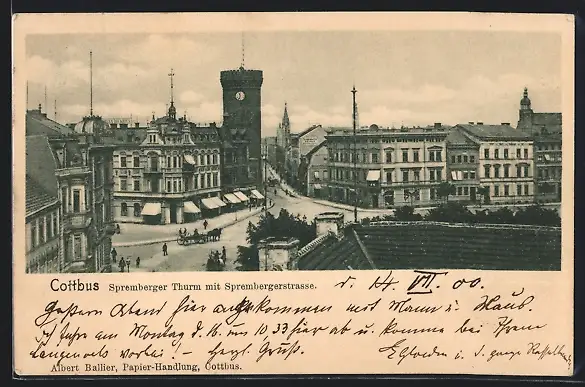 AK Cottbus, Spremberger Thurm mit Sprembergerstrasse
