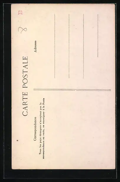 Personenbezogene Daten auf der Rückseite der Karte wurden durch blauen Textmarker unkenntlich gemacht. Die blauen Stellen sind auf die Vorderseite durchgeweicht und wirken sich negativ auf das Postkartenfoto aus