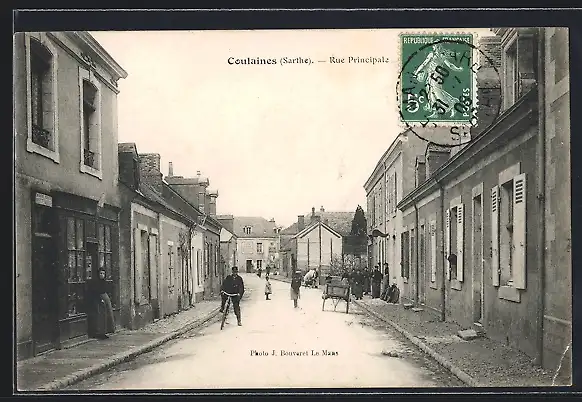 AK Coulaines, Rue Principale avec passants et maisons alignées