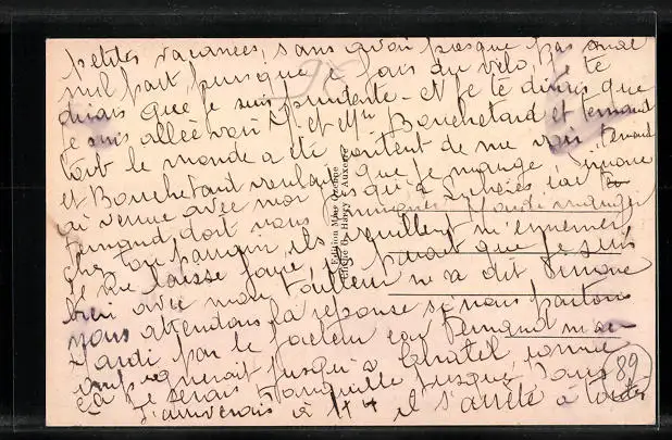 Personenbezogene Daten auf der Rückseite der Karte wurden durch blauen Textmarker unkenntlich gemacht. Die blauen Stellen sind auf die Vorderseite durchgeweicht und wirken sich negativ auf das Postkartenfoto aus