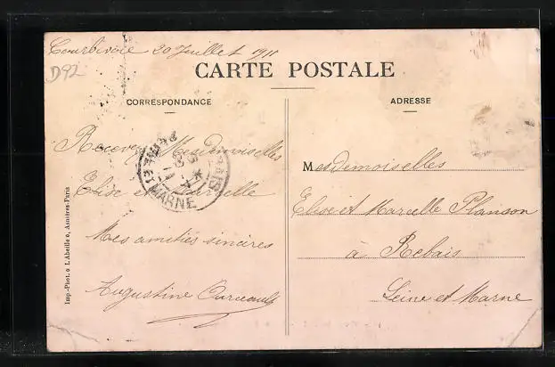 AK Courbevoie, Rue de Paris et Place du Port, Strassenbahn