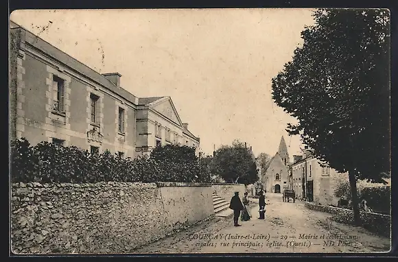 AK Courcay, Mairie et clocher, rue principale, Ouest
