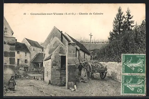 AK Courcelles-sur-Viosne, Chemin du Calvaire