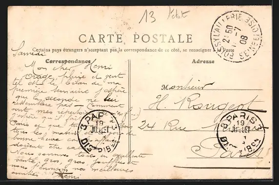 gelaufen 1908, Eckknick li. unten, guter Zustand