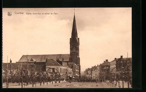 AK Courtrai, Eglise Saint-Eloi et entrée du Parc