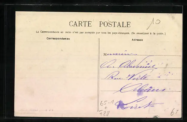 Personenbezogene Daten auf der Rückseite der Karte wurden durch blauen Textmarker unkenntlich gemacht. Die blauen Stellen sind auf die Vorderseite durchgeweicht und wirken sich negativ auf das Postkartenfoto aus