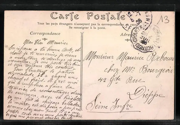 alte Ansichtskarte, gelaufen 1906, Stempelspur, guter Zustand