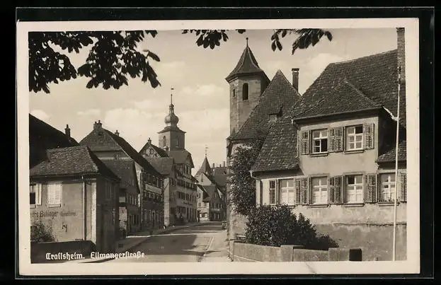 AK Crailsheim, Ellwangerstrasse mit Kirche