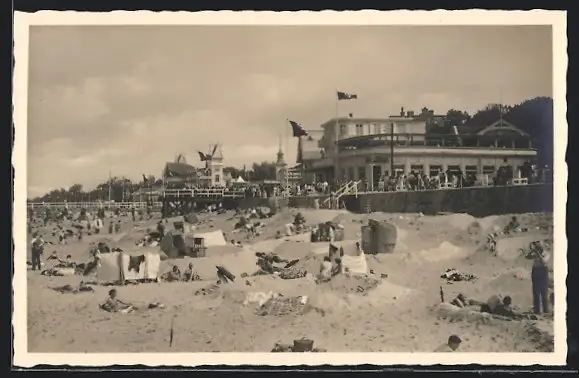 AK Cranz, Strand mit Sandburgen und Strandkörben