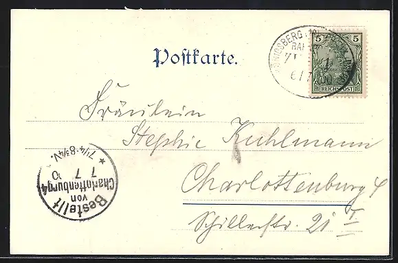 alte Ansichtskarte, gelaufen 1900, Stempelspur, guter Zustand